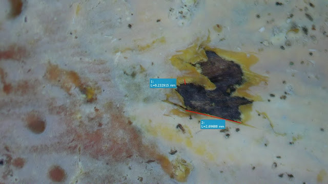 del sustrato, mate y de una coloración blanquecina en el borde y se oscurece