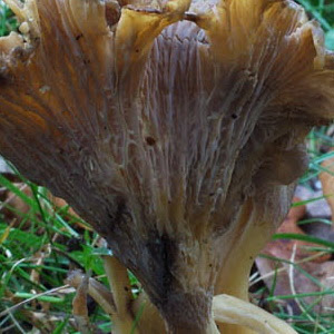 grupos bastante compactos y muy pegados al suelo, con himenio en pliegues poco